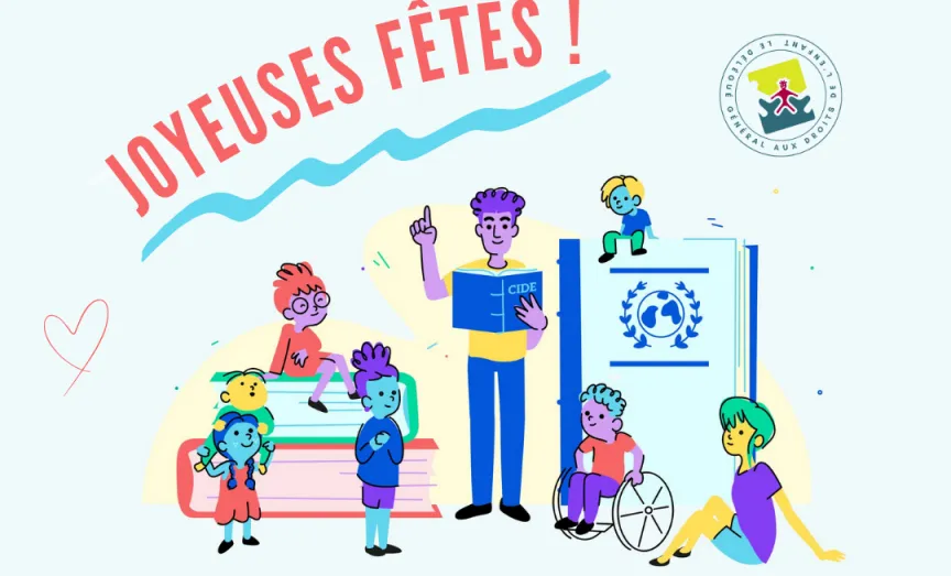 L’institution du Délégué général aux droits de l’enfant sera fermée du mardi 24 décembre à midi au jeudi 2 janvier 2026 inclus, dans le cadre de sa fermeture annuelle pour les fêtes de fin d’année. Les activités reprendront normalement à partir du vendredi 3 janvier 2026. Durant cette période, nos services ne seront pas accessibles.