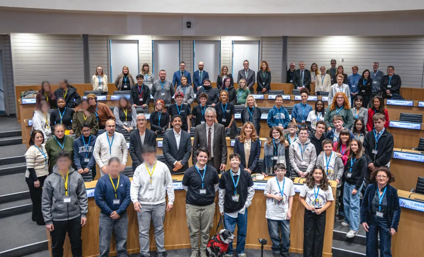 Nous tenons à remercier tout particulièrement les jeunes qui ont rempli l’hémicycle ce matin, ainsi que le Conseil des jeunes du Délégué général aux droits de l’enfant pour son engagement constant. Merci également à la classe du Lycée Guy Cudell qui a assisté à la cérémonie, aux jeunes du réseau RÉALiSM, aux jeunes accompagné·es par Un pass dans l’impasse, à Arthur Verhasselt, ainsi qu’à toutes les familles et proches venus soutenir les enfants et les jeunes dans leurs prises de parole.